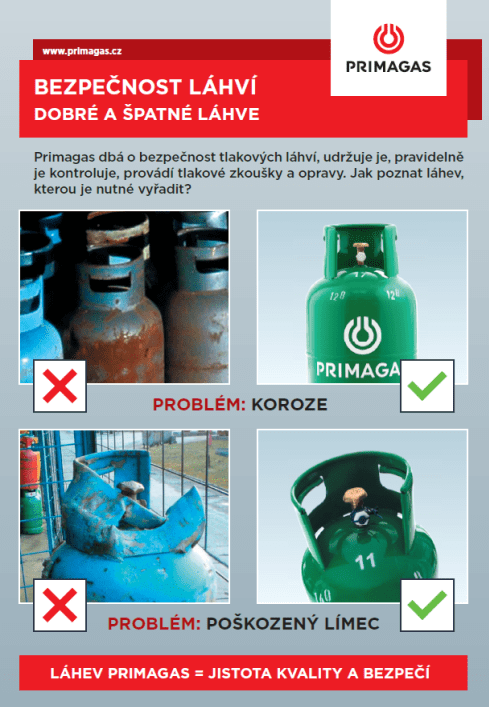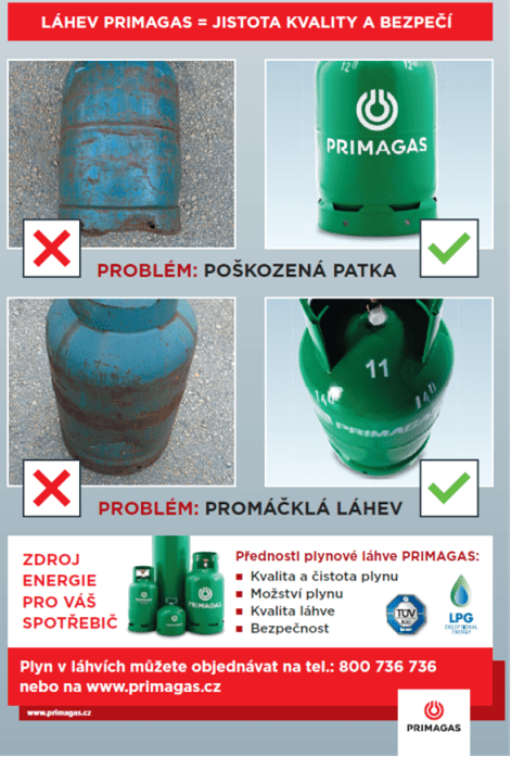 Plynovou láhev měníme klasicky kus za kus – tedy prázdná za plnou. Vrácená prázdná láhev může mít jakoukoliv barvu, pouze musí splňovat 3 kritéria: